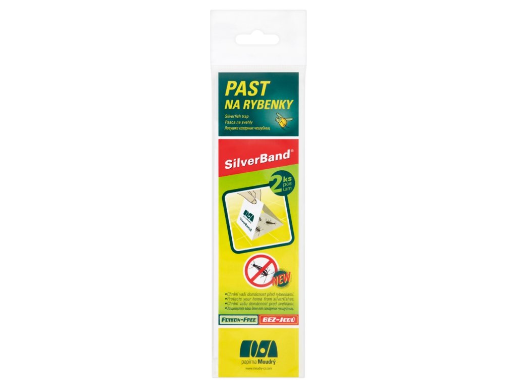 Striscia adesiva monofacciale che si ripiega a forma di triangolo. La trappola adesiva garantisce un'efficace cattura dei pesciolini d'argento (Lepisma saccharina). Può essere facilmente utilizzata ovunque si trovino pesciolini d'argento: nelle aree di conservazione degli alimenti, in luoghi bui come dispense, magazzini, in luoghi con elevata umidità come bagni o servizi igienici.