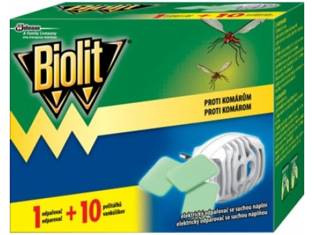 Il vaporizzatore elettrico Biolit con 10 tamponi elimina zanzare, moscerini, moscerini e altri piccoli insetti. Vi proteggerà dagli insetti fastidiosi per almeno 10 notti (1 tampone per notte = da 8 a 10 ore). Il vaporizzatore elettrico Biolit è utilizzato principalmente in camere da letto, camerette e altri soggiorni.