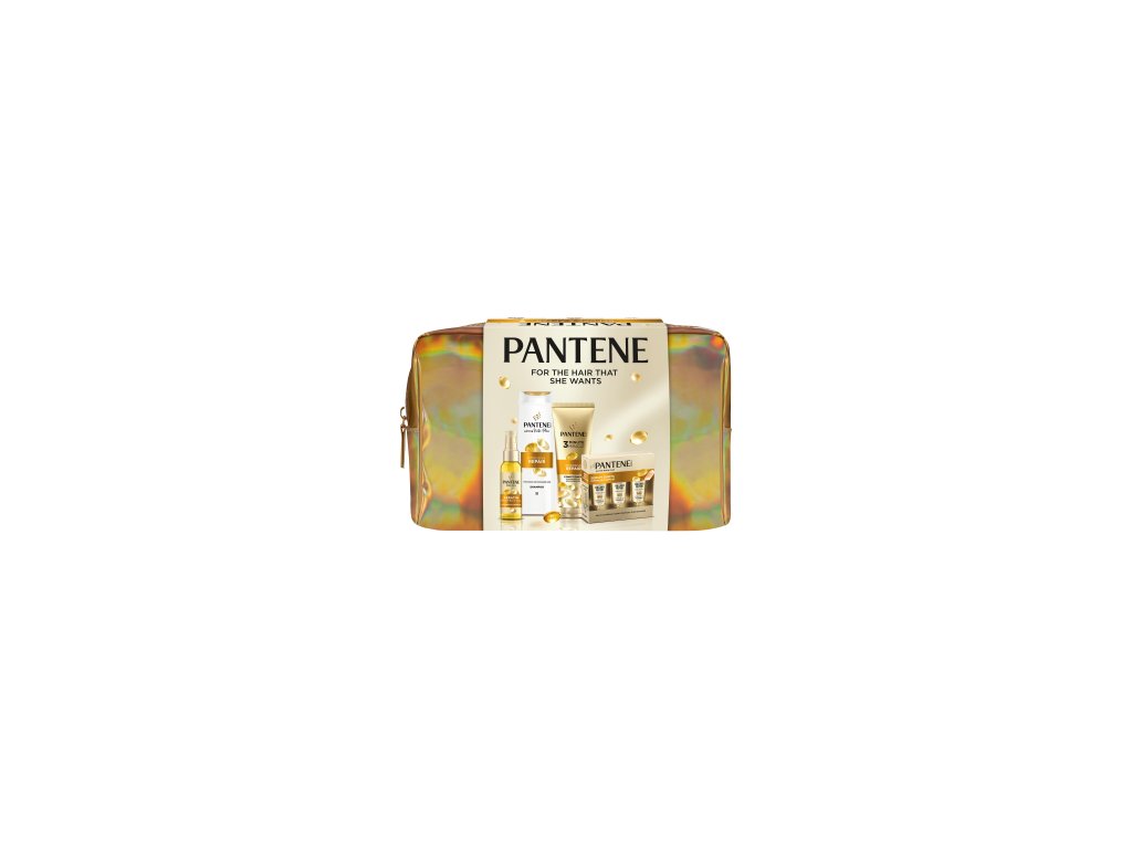 Set regalo Pantene per donna: shampoo Pro-V Active Nutri Plex Intensive Repair da 250 ml, balsamo 3 Minute Miracle Intensive Repair, siero Shots 3x15 ml, olio per capelli Keratin Protect da 100 ml, borsa regalo dorata